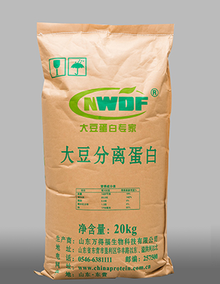 以非轉(zhuǎn)基因大豆為原料加工而成的分離蛋白,具有較好的冷水分散性、凝膠形成 性、低泡沫性等特征,適用于滾揉類、注射類高端肉制品。